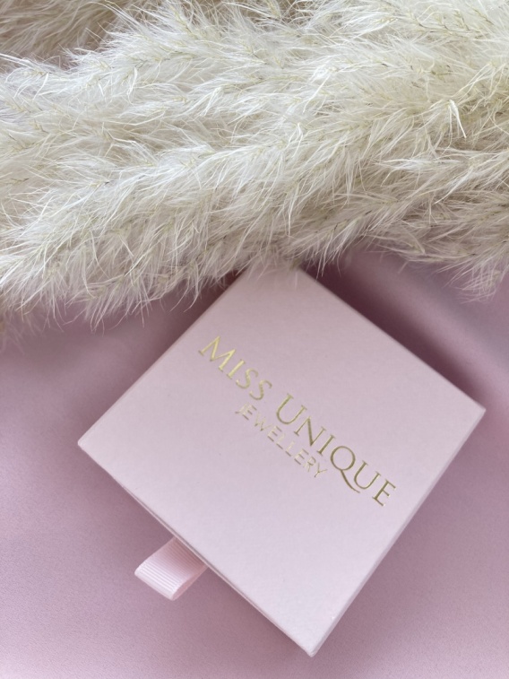 • Eleganckie opakowanie- szufladka: pudełko jest w delikatnym kolorze pudrowego różu oraz czarnym, a każde z nich ma wytłoczone złote logo Miss Unique. Powierzchnia opakowania to karton fakturowany, nadający pudełeczku elegancki wyraz. Mała szufladka łatwo się wysuwa, gdy pociągniesz za tasiemkę.